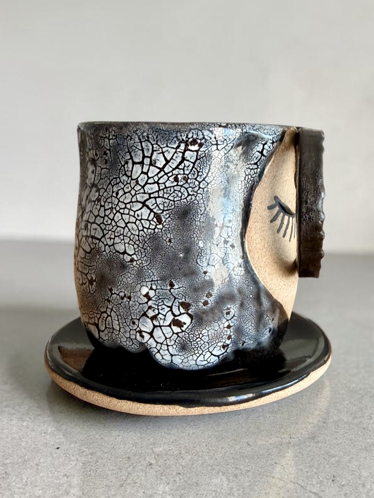 Avec ses lunettes graphiques et son émail profond aux effets presque minéraux, elle apporte une touche raffinée et contemporaine à n’importe quel coin de la maison.