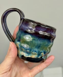 Ce mug a été conçu et réalisé entièrement à la main en argile de grès durable et fini avec un émaillage de qualité alimentaire et il passe sans problème au lave-vaisselle. Il a été conçu pour un usage quotidien.