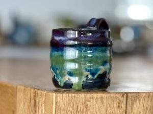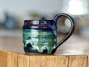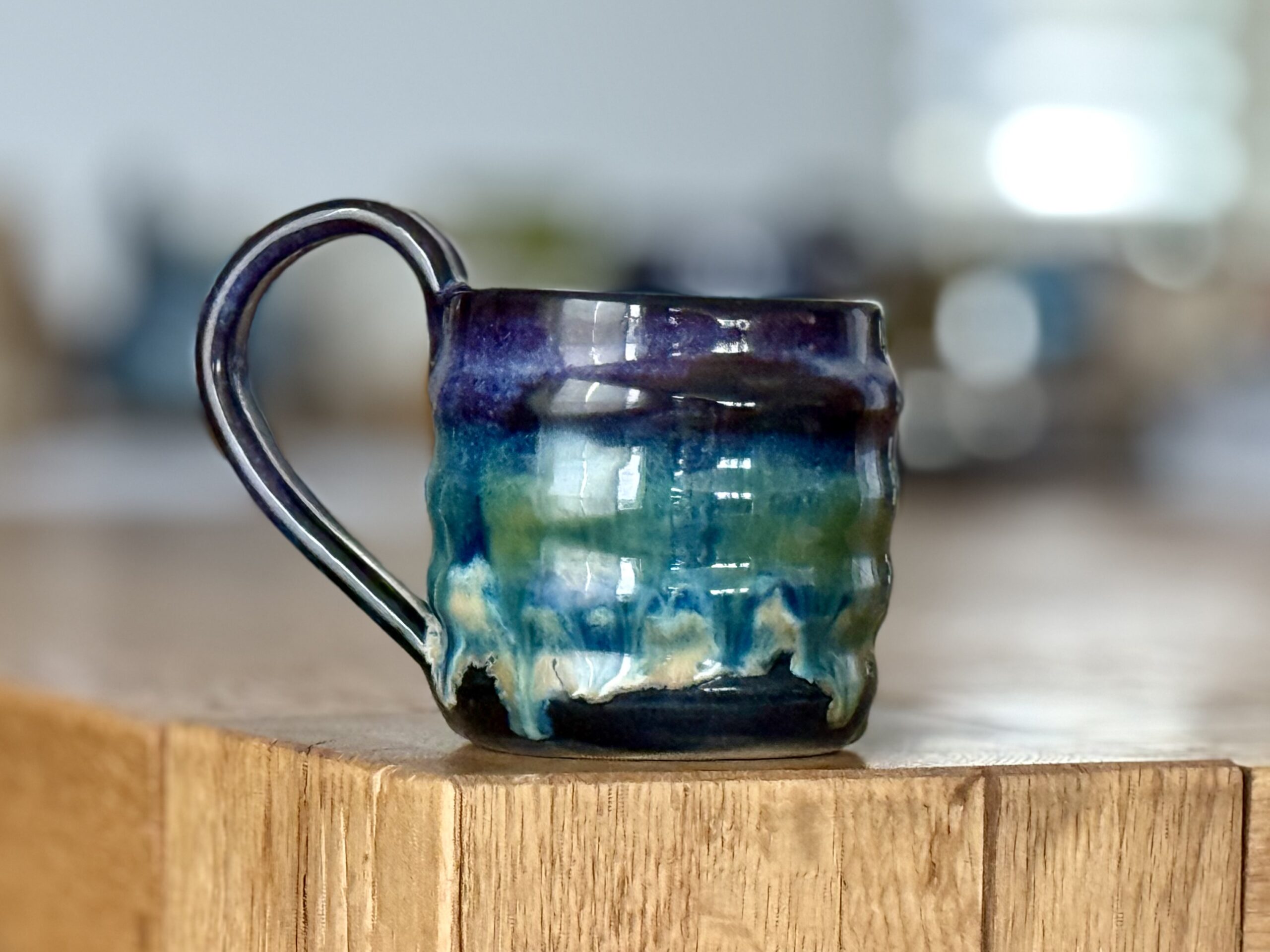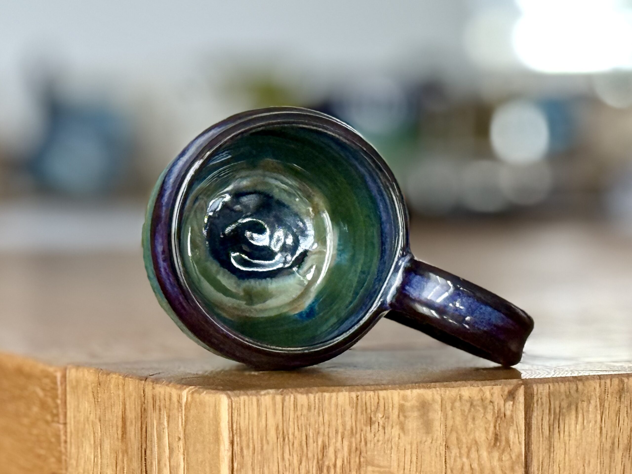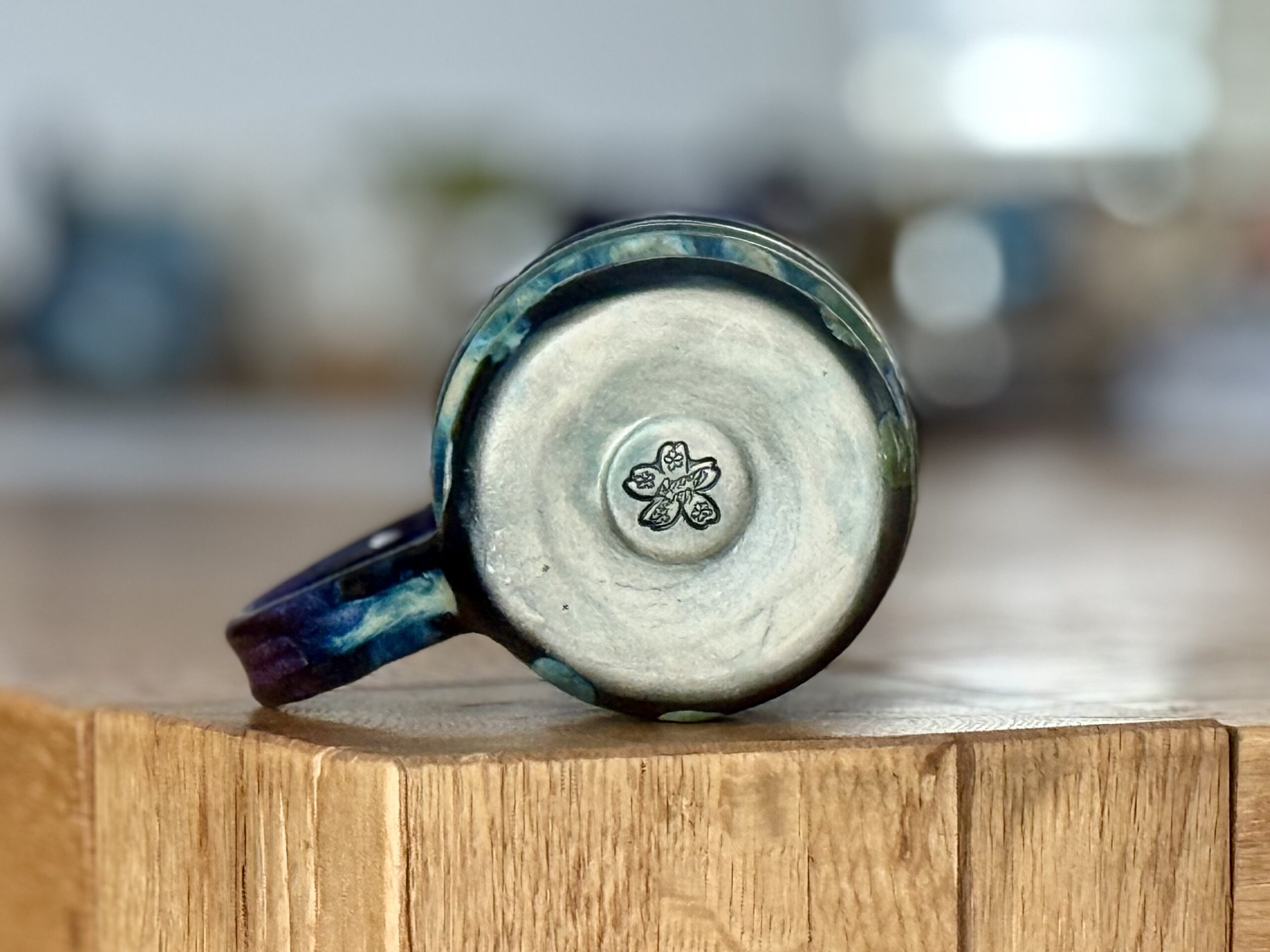 Ce mug a été conçu et réalisé entièrement à la main en argile de grès durable et fini avec un émaillage de qualité alimentaire et il passe sans problème au lave-vaisselle. Il a été conçu pour un usage quotidien.
