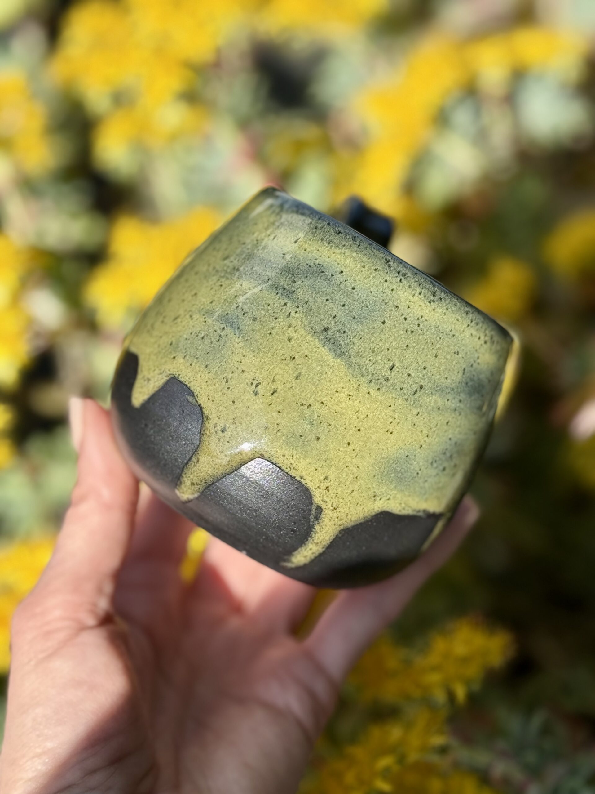 Ce mug a été conçu et réalisé entièrement à la main en argile de grès durable et fini avec un émaillage de qualité alimentaire et il passe sans problème au lave-vaisselle. Il a été conçu pour un usage quotidien.