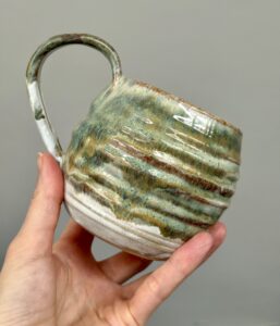Ce mug a été conçu et réalisé entièrement à la main en argile de grès durable et fini avec un émaillage de qualité alimentaire et il passe sans problème au lave-vaisselle. Il a été conçu pour un usage quotidien.
