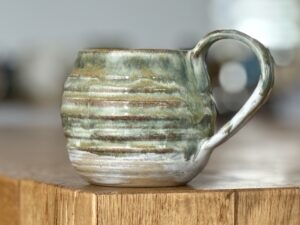 Ce mug a été conçu et réalisé entièrement à la main en argile de grès durable et fini avec un émaillage de qualité alimentaire et il passe sans problème au lave-vaisselle. Il a été conçu pour un usage quotidien.