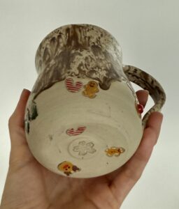 Ce mug a été conçu et réalisé entièrement à la main en argile de grès durable et fini avec un émaillage de qualité alimentaire et il passe sans problème au lave-vaisselle. Il a été conçu pour un usage quotidien.