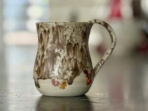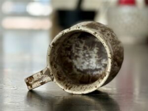 Ce mug a été conçu et réalisé entièrement à la main en argile de grès durable et fini avec un émaillage de qualité alimentaire et il passe sans problème au lave-vaisselle. Il a été conçu pour un usage quotidien.