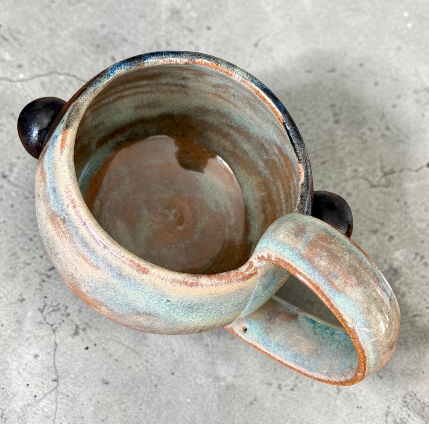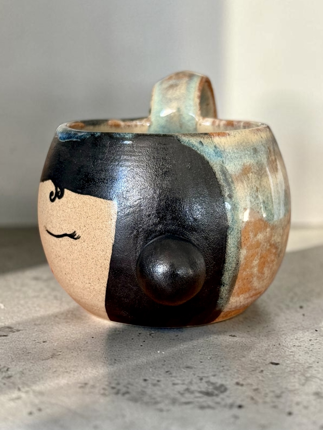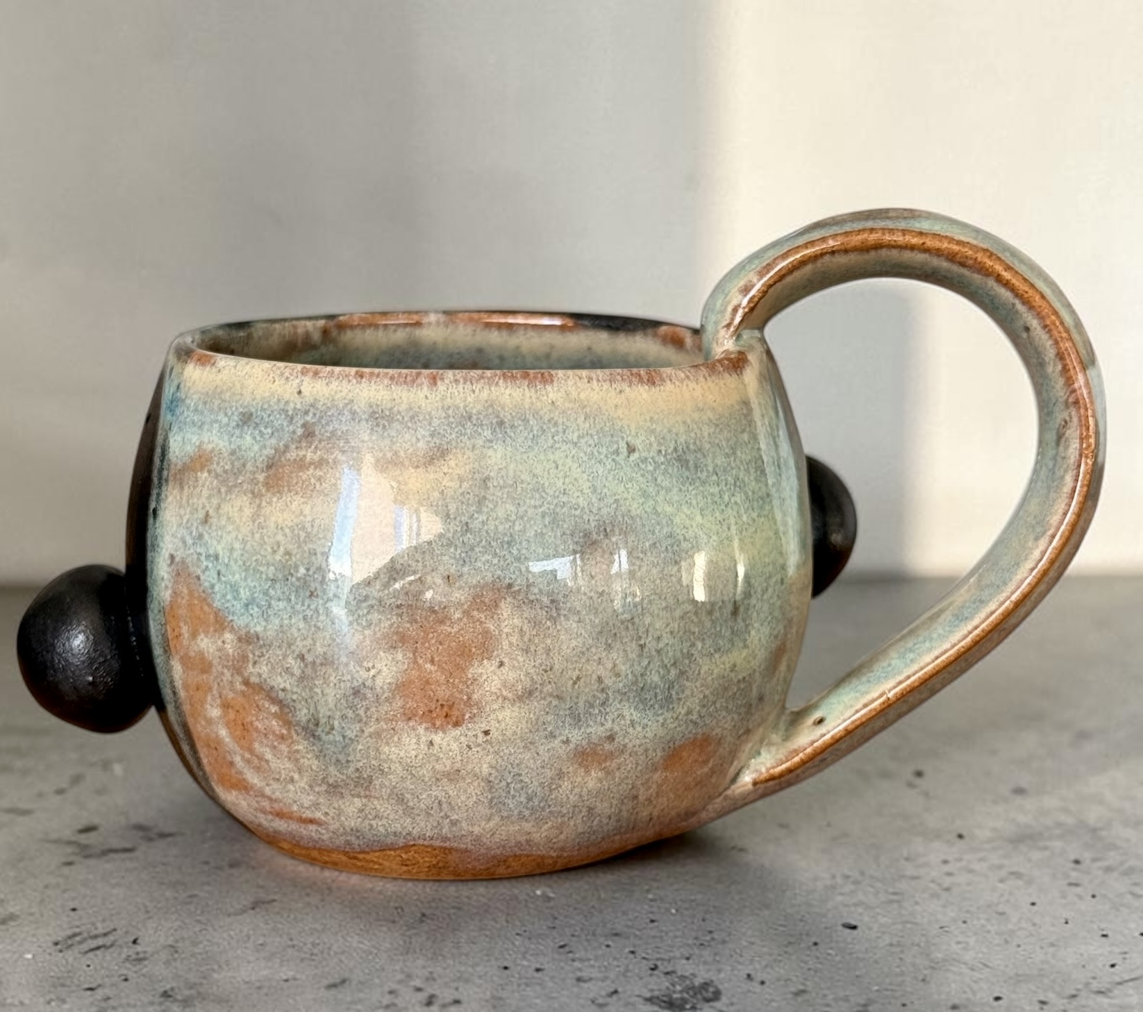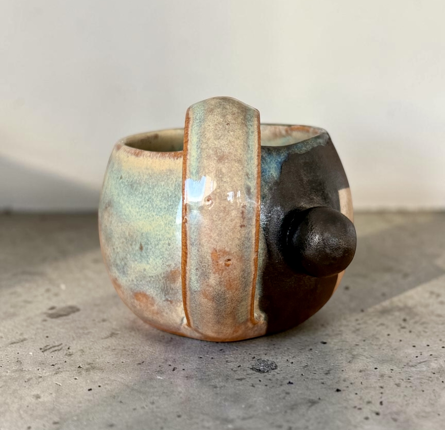Ce mug a été conçu et réalisé entièrement à la main en argile de grès durable et fini avec un émaillage de qualité alimentaire et il passe sans problème au lave-vaisselle. Il a été conçu pour un usage quotidien.