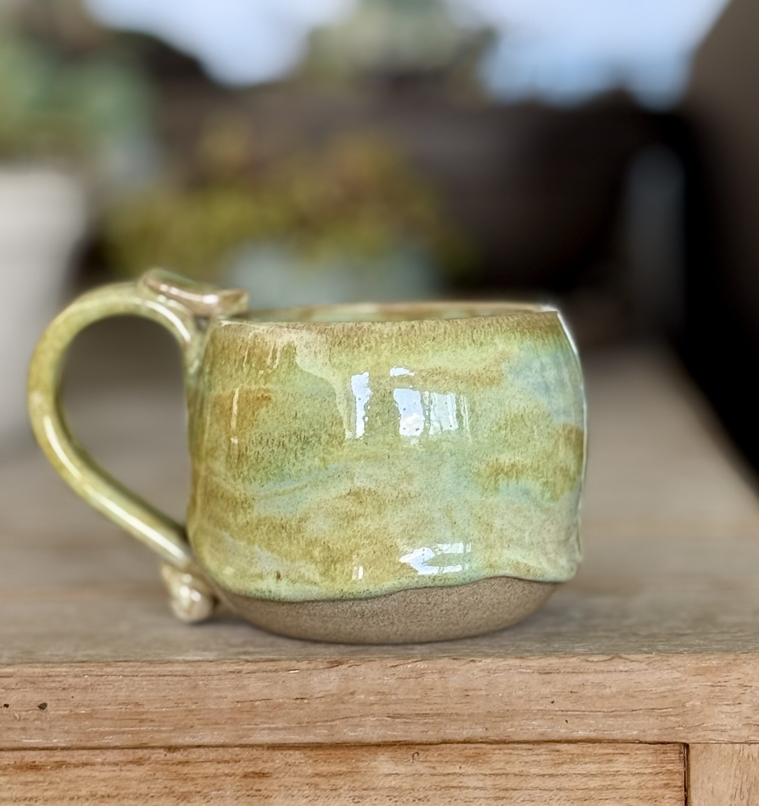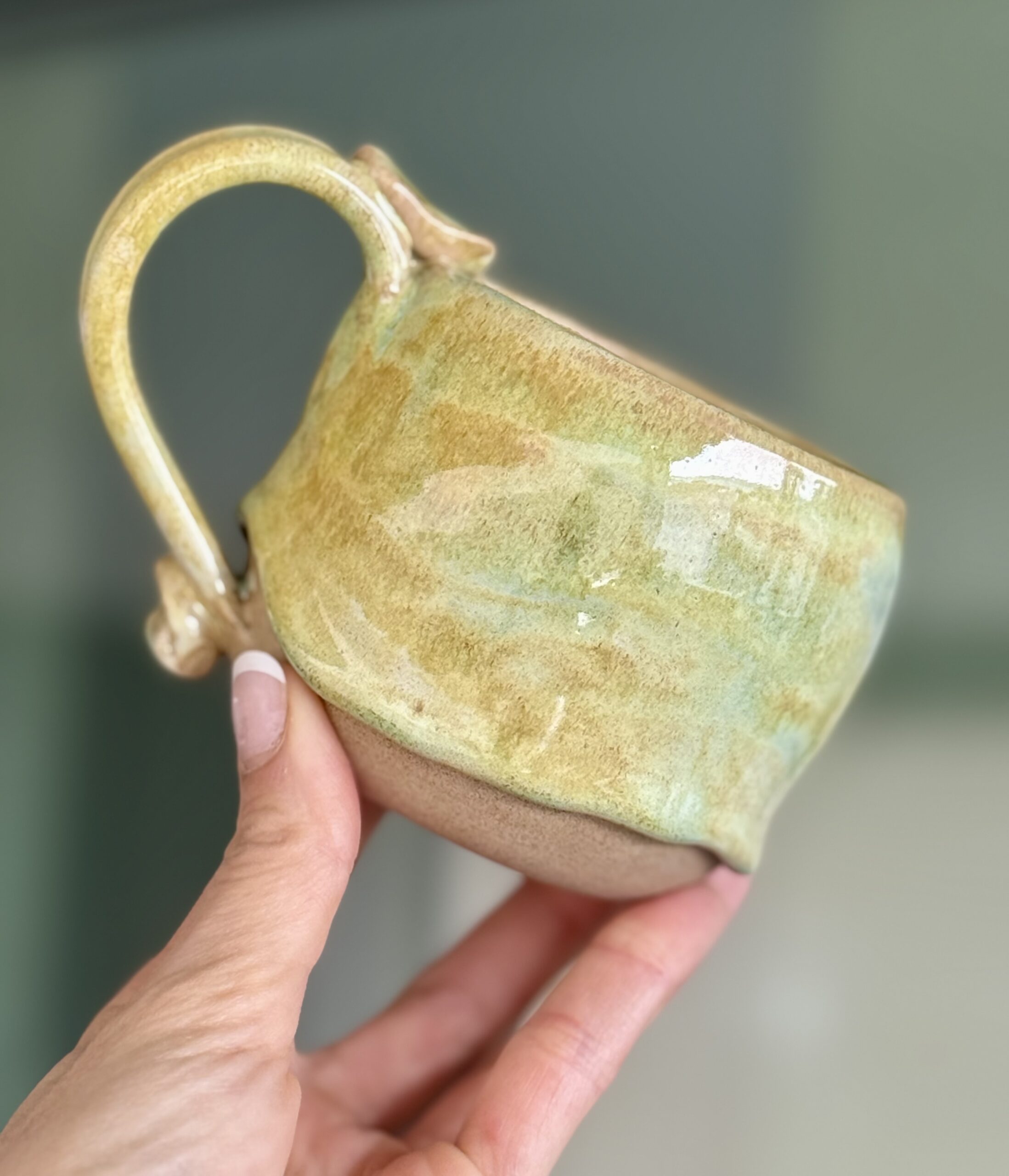 Ce mug a été conçu et réalisé entièrement à la main en argile de grès durable et fini avec un émaillage de qualité alimentaire et il passe sans problème au lave-vaisselle. Il a été conçu pour un usage quotidien.