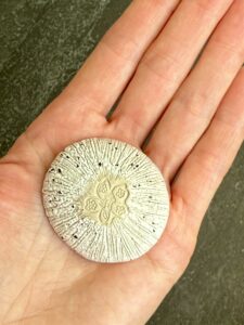 La worry stone est un petit galet anti-stress, avec un creux pour le pouce que l’on peut frotter dans un mouvement de va-et-vient et qui contribue à réduire le stress, mais aussi à dévier de mauvaises habitudes comme se ronger les ongles, se gratter, fumer… Elle est façonnée à la main et émaillée de céramique. Sa forme et sa couleur sont donc uniques.