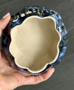 Ce photophore a été conçu et réalisé entièrement à la main en argile de grès durable et fini avec un émaillage de qualité. Il a été conçu pour un usage quotidien.
